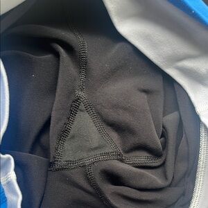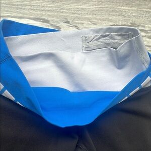 Comfortable and stylish leggings featuring a vibrant blue waistband. Perfect for active days.