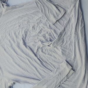 Elevate your wardrobe with this stylish light gray women's top. Perfect for any occasion, this top offers both comfort and elegance. please see pictures light stains and small hole on the Sleve