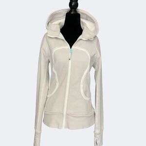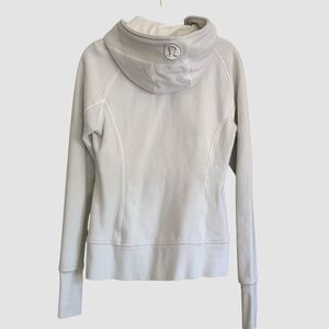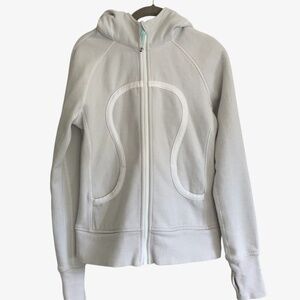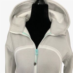 Lululemon Light Grey Heavyweight Scuba Zip Front Hoodie Turquoise Detail SZ 6