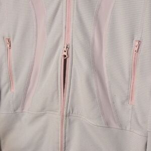 Lululemon Light Pale Pink/White Multi Zip-Up Jacket With Zippered Pockets.