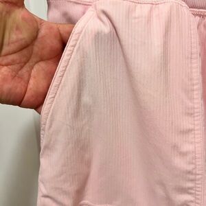 Light pink shorts with a comfortable drawstring. Ideal for active wear.