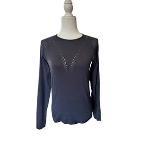 Lululemon Light Speed Long Sleeve Top M Black Crew Neck Perforated Lightweight