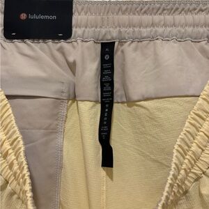Light yellow shorts by Lululemon. Perfect for active wear.