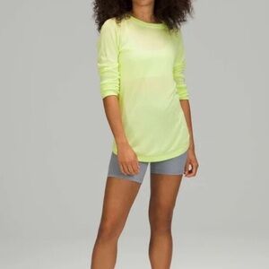 Stay cool, comfy, and chic in this lightweight Lululemon Boolux Sweater in the rare “Crispin Green” colorway. This airy long sleeve top features breathable panels, thumbholes, and that signature Lululemon softness—perfect for layering before or after your workout (or let’s be real, just running errands in athleisure glory).