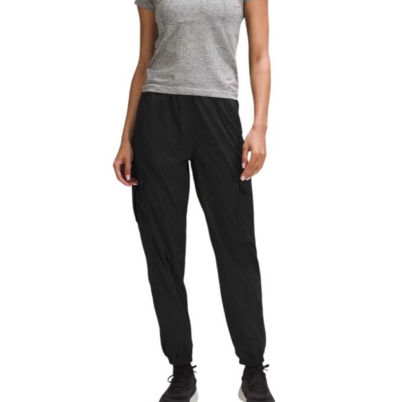 Keywords: Lululemon, Cargo pants, Joggers, Womens, Size 8, Black, Athletic, Activewear, Comfortable, Elastic waist, Cargo pockets, Detours Welcome, Casual, Travel pants