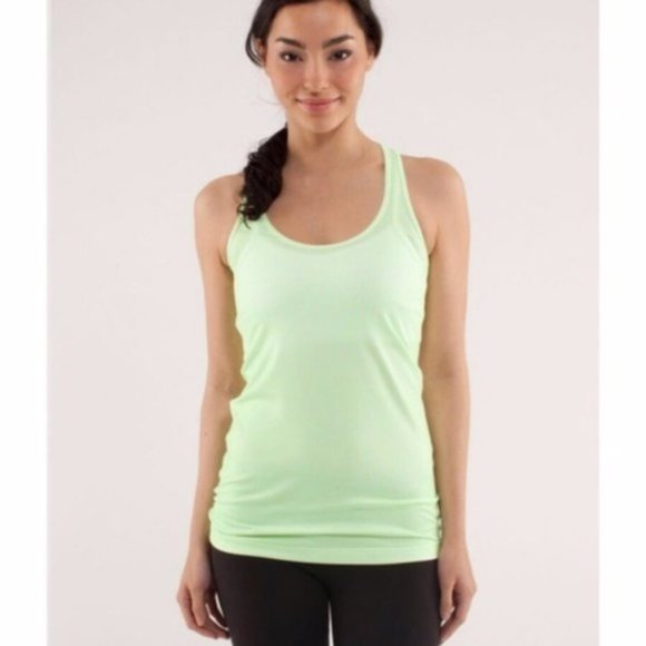 Lululemon Lime Pink Polka Dots Round Neck Tank Racerback