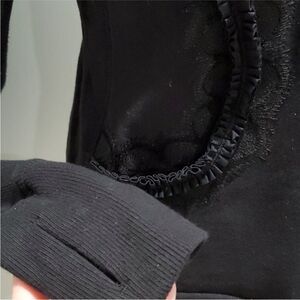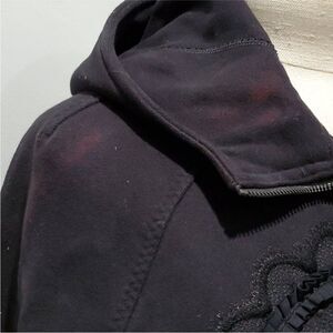 Limited Edition Lululemon black lace scuba hoodie. Size 12. Gorgeous black hoodie. Good used condition. Very warm and cozy. Minor stains on collar and shoulder. If you are crafty, you can tie dye this cool jacket. No rips or defects.