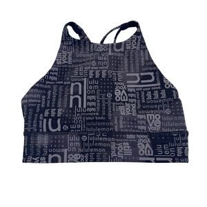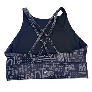 Lululemon Logo Energy Sports Bra High Neck Long Line Black Logo All Over Print