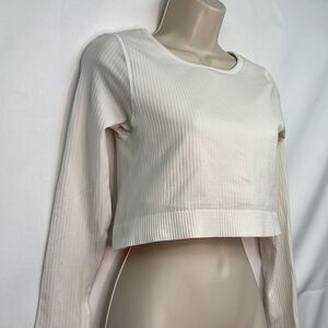 Lululemon Lon sleeve cropped ribbed top with sports bra lining GUC size 8