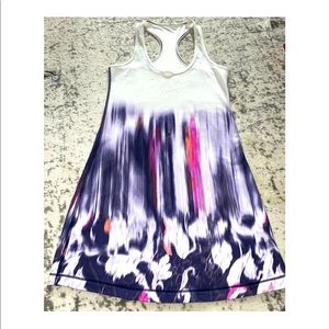 Lululemon long racer back tank. Top is white multi color bottom. Size 6