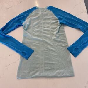 Blue Lululemon Long Sleeve. Women’s size 6. In good condition! No holes or stains. Has thumb holes. Measurements are approximate.