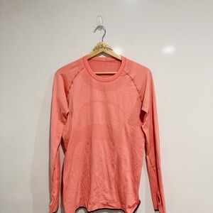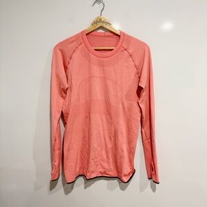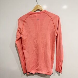 Stylish coral activewear top with navy accents. Perfect for workouts.