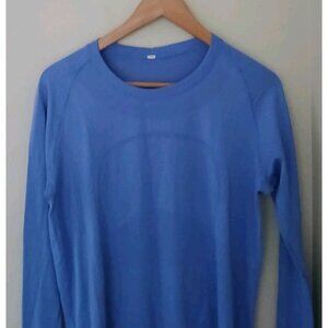Lululemon Long Sleeve Swiftly Top. Size 12. Blue. Yoga, Run, Spin. Thumbies. Lightweight. In nice, preowned condition. Small pill on front. Measures approximately 18.5" pit to pit, 28" shoulder to hem.