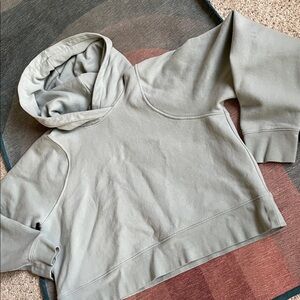 great pre loved condition size 14 lululemon loungeful cropped hoodie. pretty pale green blue gray color ( everyone sees color different) perfect for fall.