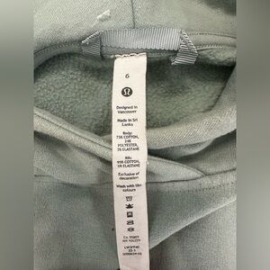 Lululemon Loungeful Cropped Hoodie Silver Blue size 6 inseam great condition. Stock photo attached. Is cropped.
