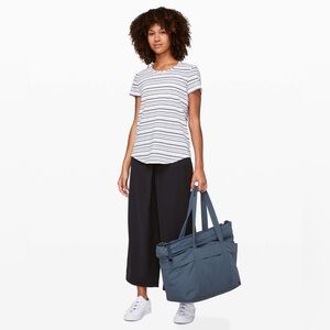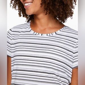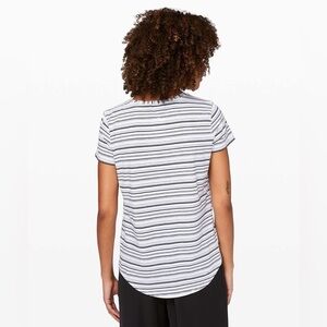 Classic striped "Love Crew III" tee from Lululemon. Pull tag removed but this is a size 6 (and can fit a size 4 oversized). In great preowned condition; no visible flaws. White logo at top back.