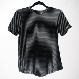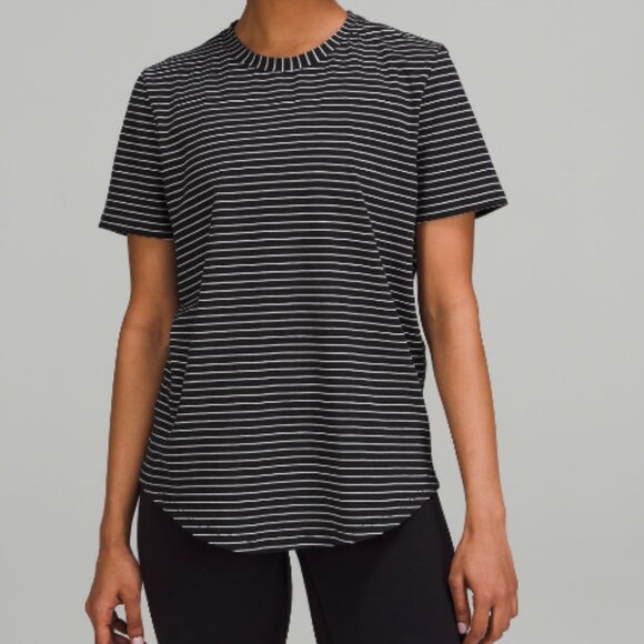 Lululemon Love Crew Short Sleeve Curved Hem Tee Shirt - 4 black white stripe