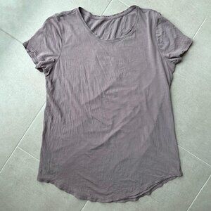 Elevate your everyday essentials with this gently worn Lululemon Love Crewneck T-Shirt in a beautiful Violet Verbena shade — a soft, muted lavender that's both calming and chic.