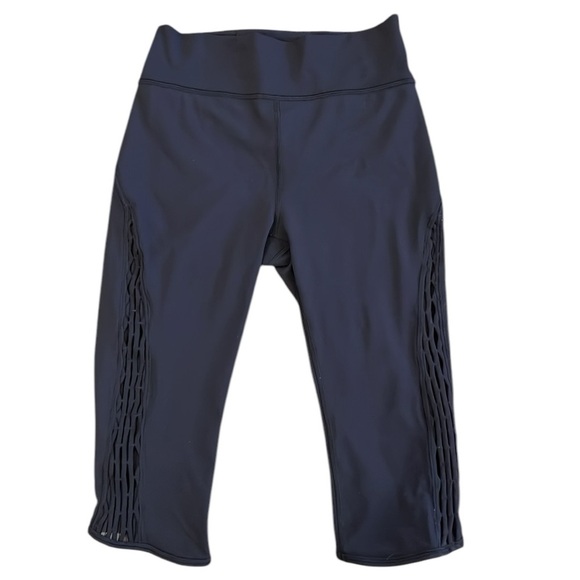 Lululemon Love Knot High Rise Capris Black Hidden Pocket Mesh Panels Size 6