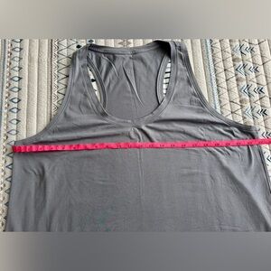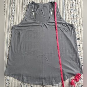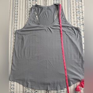 Preloved Lululemon Love Tank Top. I would describe this as new without tags. Looks + feels brand new with no signs of wear other than missing its rip tag. I purchased this as a 'size 10' and it is not a size 10. I would say it's closer to a 14-16, but please purchase using measurements as I am not certain. Gorgeous gray color. 🩶