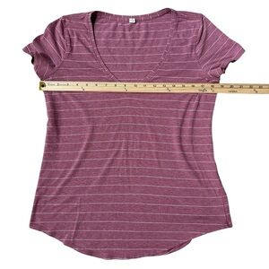 Lululemon Love Tee V Short Serve Stripe Heathered So Merlot White, Size 6 W3BW8S