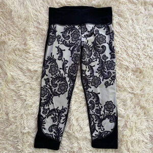 Lululemon Lustrous Crop leggings Laceoflage Polar Cream Black low rise size 6