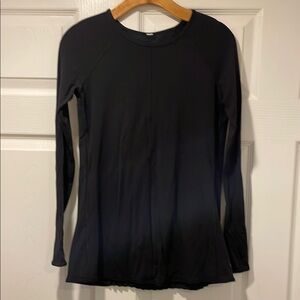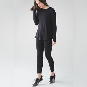 Lululemon Making Moves Long Sleeve in color black, size 4. This item is in very good condition with no strains or holes. This top is made of Lululemon's signature Rulu Light material with pleated detailing in the back. The long sleeves have thumbholes. The tag has been removed.