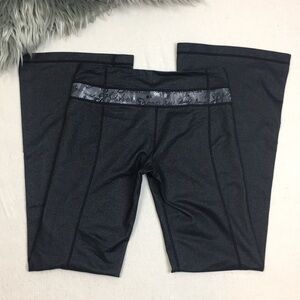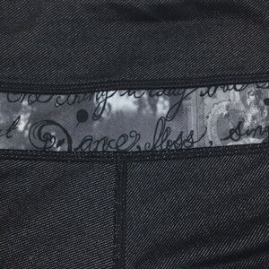 Dark Blue Denim colored groove pant with manifesto print at waistband - size 4 - very gently worn, no flaws