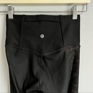 Excellent condition Lululemon leggings in black color with camo pattern knit in tan/orange color.