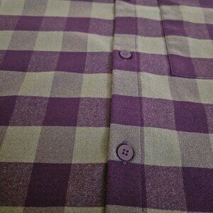 Lululemon Mason's Peak Button Up Long Sleeve Flannel Shirt Men's Size Large (Check pictures for measures). Color is Maroon/Brown Plaid. Great Used Condition.