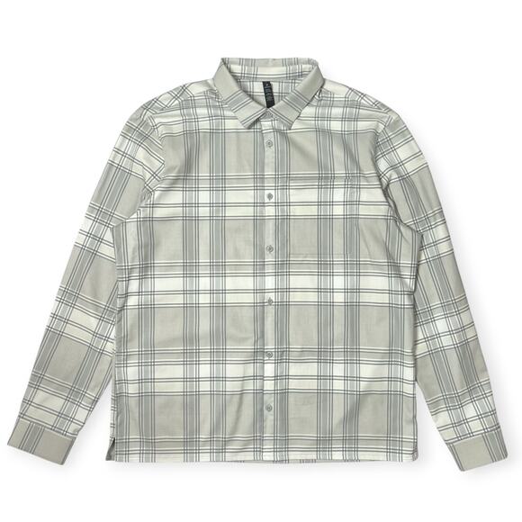 Lululemon Masons Peak Flannel MENS XXL Gray White Plaid Long Sleeve Button Up Shirt Secure Pocket