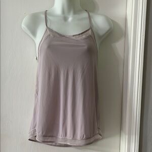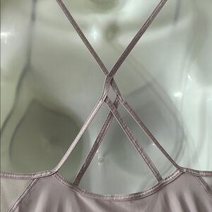 Chic mauve tank with intricate strappy back. Ideal for yoga or casual outings
