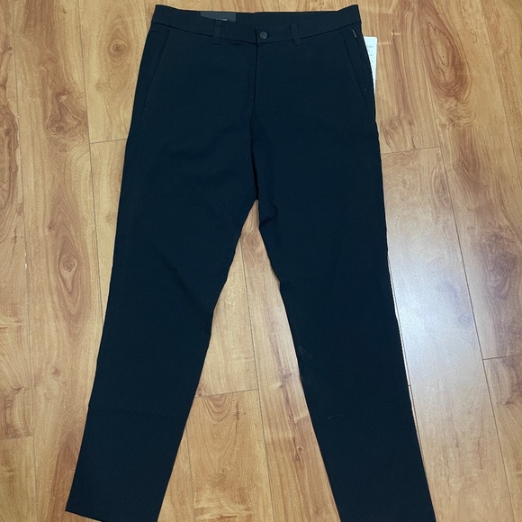 Lululemon Men Commission Pant Slim 34 x 32 Slim Fit Black Grid Patterned NWT