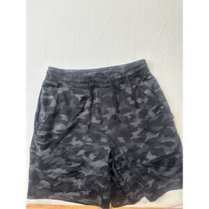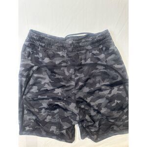 Lululemon Men Pace Breaker Black Camouflage unlined gym active shorts, size smal