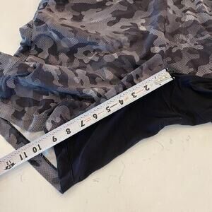 In worn condition. Does not have a size tag, but fits like a Men’s Medium (M). 9 inch inseam. Black and grey camo. Please note the back pocket zipper is broke and won’t zip. Please see photos for approximate measurements.
