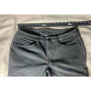Very heavy fabric. Size tag has been removed but measure as 31/32. Black with a distressed finish. Excellent used condition. No flaws.