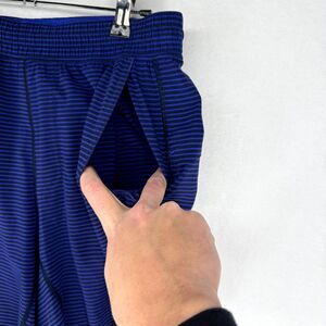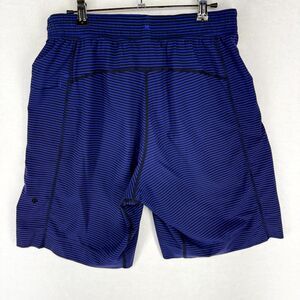 Lululemon Men's Black and Blue Striped Athletic Shorts Size S