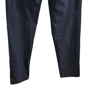 These Lululemon men's dress pants in size 36 offer a classic fit with a straight leg style. Made from durable and comfortable material, they feature a mid-rise and a solid Blue color, suitable for casual occasions. The pants have a 35" inseam, a button closure, and are machine washable. They include the iconic Lululemon logo. The pants are pre-owned and in good condition, with a small tear on the left leg.