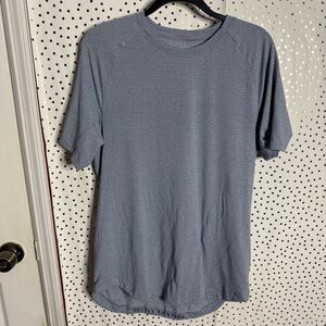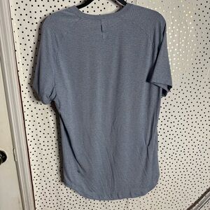 This stylish blue short sleeve shirt offers comfort and a sleek look for any casual occasion.