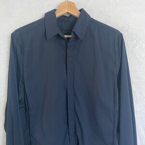 Lululemon Mens Button Down Blue Striped Long Sleeve Stretch Athletic Fit button up Shirt