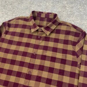 Lululemon Men's Button-Up Shirt Burgundy/Olive Plaid Long Sleeve Casual Size XXL