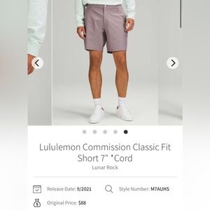 Lululemon Men’s Commission Classic Fit Short 7" *Cord- Lunar Rock/ Size 31