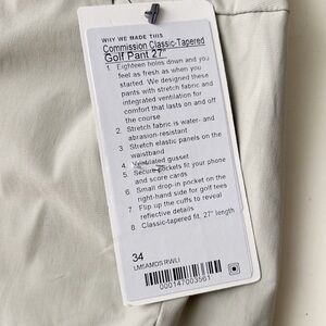 Lululemon Men’s Commission Golf Pants 34x27 Raw Linen New Classic Tapered