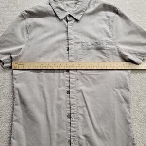 Elevate your wardrobe with this stylish Lululemon Commission Oxford Button Up Shirt. Designed for the modern man, this short-sleeve shirt in a versatile gray color is perfect for both casual and semi-formal occasions. Made with high-quality materials, it offers a comfortable and breathable fit.