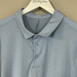 Lululemon Mens Evolution Short Sleeve Polo Shirt Pique Heathered Blue Linen