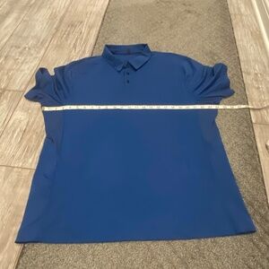 Basically a hole-in-one. This polo, powered by our anti-stink technology, keeps you cool and comfortable on the course or wherever your day takes you. Designed for golf and men on the move. Body: 82% Recycled polyester, 10% Lyocell, 5% Elastane, 3% X-static® nylon Sweat Wicking Fabric, quick drying and four-way stretch More wearing, less washing. Silverescent™ technology, powered by X-STATIC®, inhibits the growth of odor-causing bacteria on the fabric ARMPIT TO ARMPIT 24 INCHES TOP OF SHOULDER TO BOTTOM OF HEM 28 INCHES Good preowned condition. Size tag removed but based on measurements and Lululemon size chart this is a size XXL. See photos.