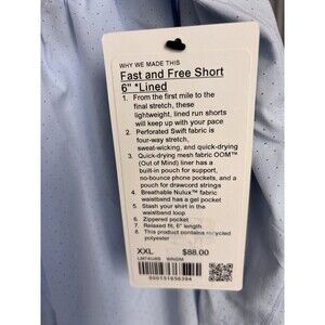 Lululemon Men’s Fast Free Lined Short 6" Lined Windmill Blue Sz XXL New $88