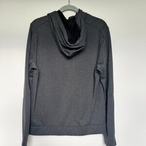 This thing is rad. Super soft with pockets galore (well, 3 of em, anyway) - two at the side and one up top. This Lululemon zip up hoodie is a grayish color, sorta gunmetal or charcoal or something, and is ready for another life with someone who will wear it. Do people smoke IN their homes anymore? Well, I don't (I dont smoke at all... anything), so this comes from a smoke-free home. Pair this with some Satisfy Running gear and you're well on your way to being the most stylish person at the coffee shop post-run. Sip that oatmilk latte with pride and confidence.