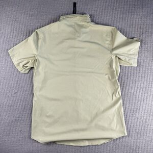 The Lululemon Men's L Airing Easy Shirt is a stylish and functional piece of clothing perfect for casual occasions. Made from moisture-wicking polyester material, this short sleeve button-up shirt features a solid yellow color and a comfortable stretch fit. With a machine washable design, this shirt is easy to care for and suitable for wearing in the summer, fall, and spring seasons. The Lululemon brand ensures quality and durability, making this shirt a versatile and practical addition to any man's wardrobe.