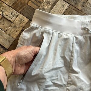 Lululemon Men’s License To Train Lined Shorts 7”. Color: Silver Cloud. Waistband drawcord. Zippered side and hand pockets. Shorts are in very good condition—but the shorts lining has been cut(see last few pictures). Size Small